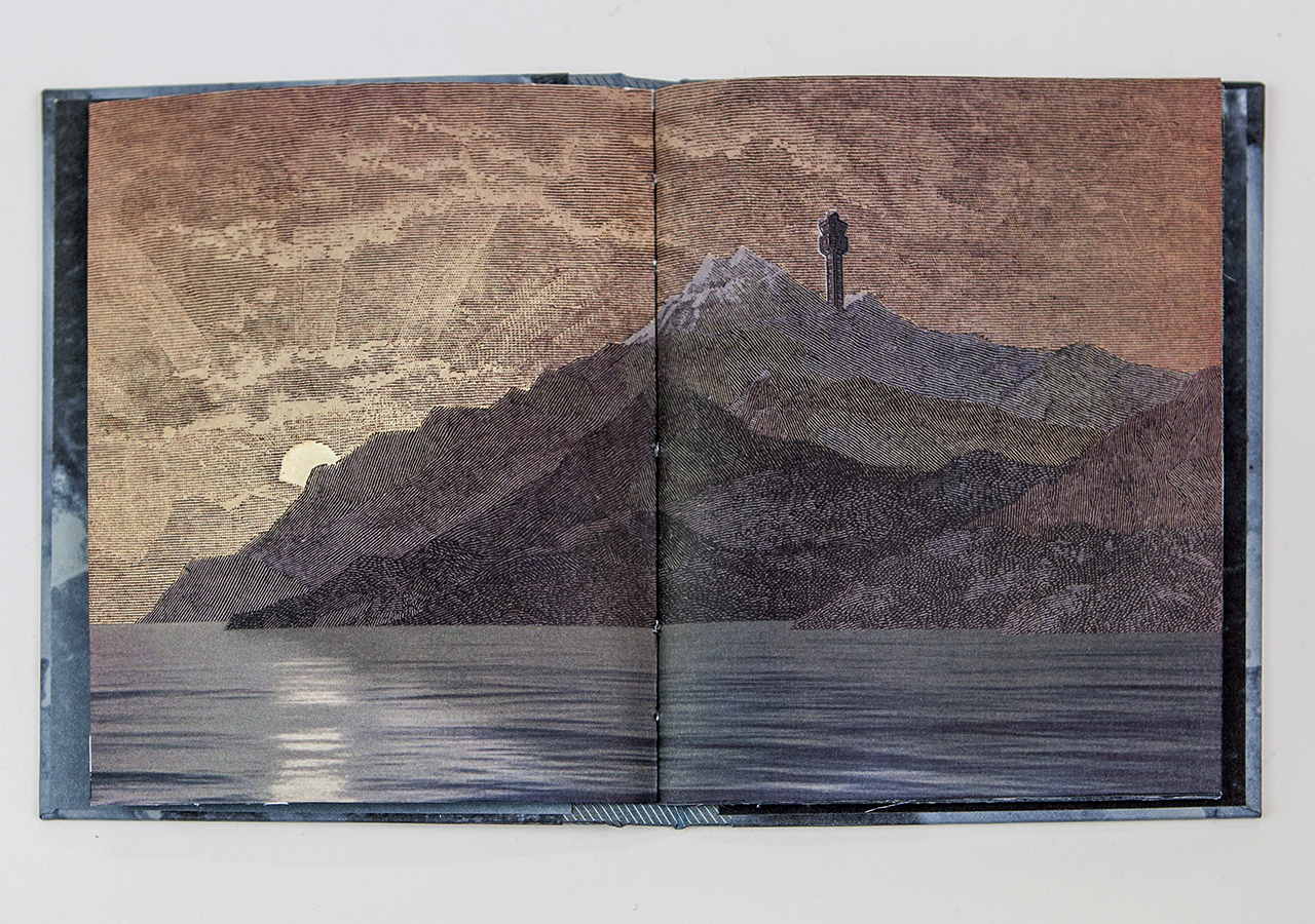 The twenty unbound copies that Brad sent were sewn and cased-in by me, with a silver foil-stamped title on the cover. I am hoping to create the second, larger version, in 2018, and publish an expanded edition of fifty copies myself, using pigmented inkjet, and letterpress with metallic silver ink for the text and contour lines on the alternating spreads. I am planning on having about 96 pages instead of the current 48 pages.