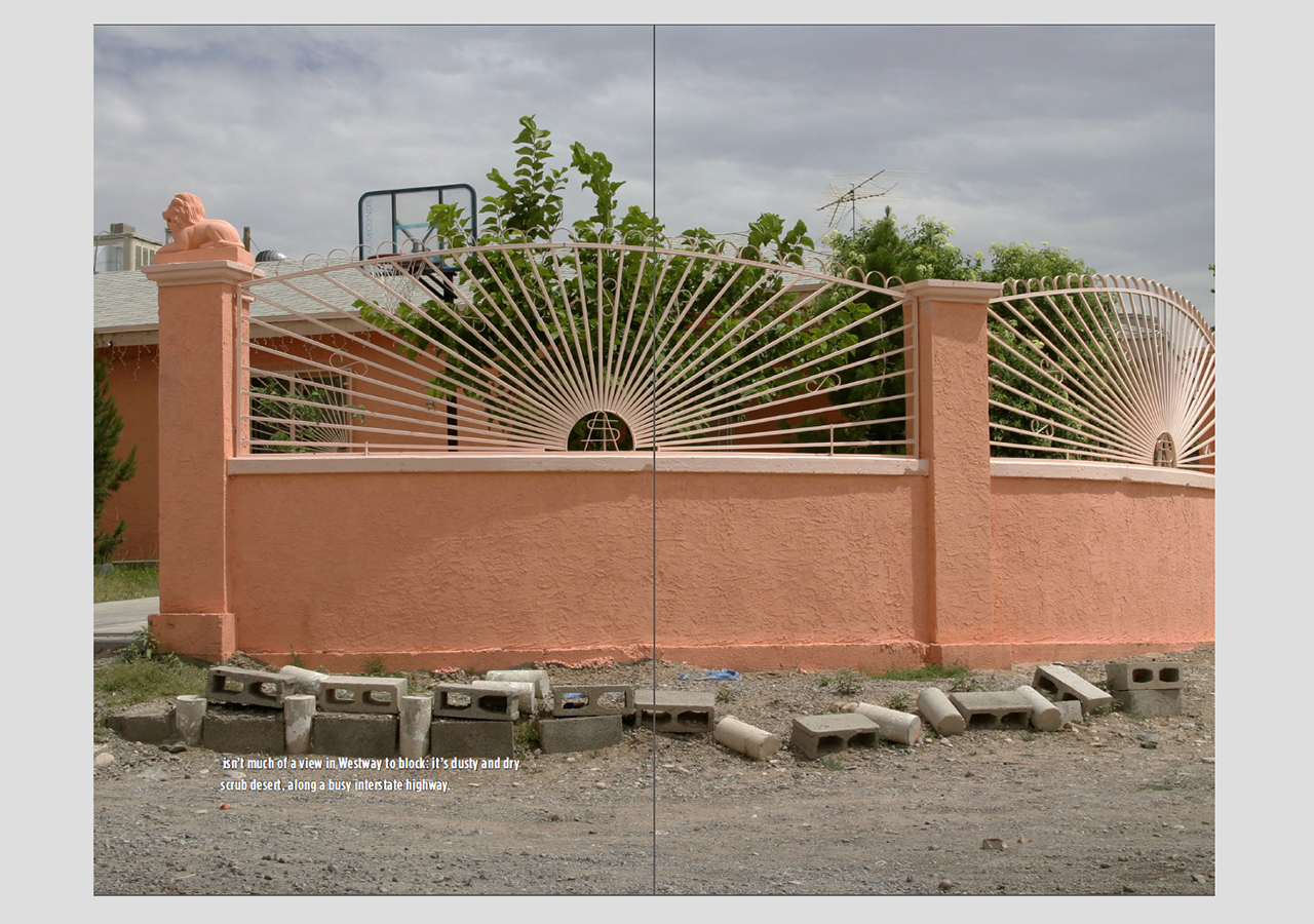 "Years ago, when I lived in New Mexico for a period of time, there was a small blue-collar town named Westway only a few miles away, across the state border in Texas. Westway is a predominantly Mexican-American residential settlement of 4,200 that grew up organically over the last twenty years around a large commercial truck-stop along I-10. It lies only about three quarters of a mile from the Rio Grande and about nine miles from the Mexican border.