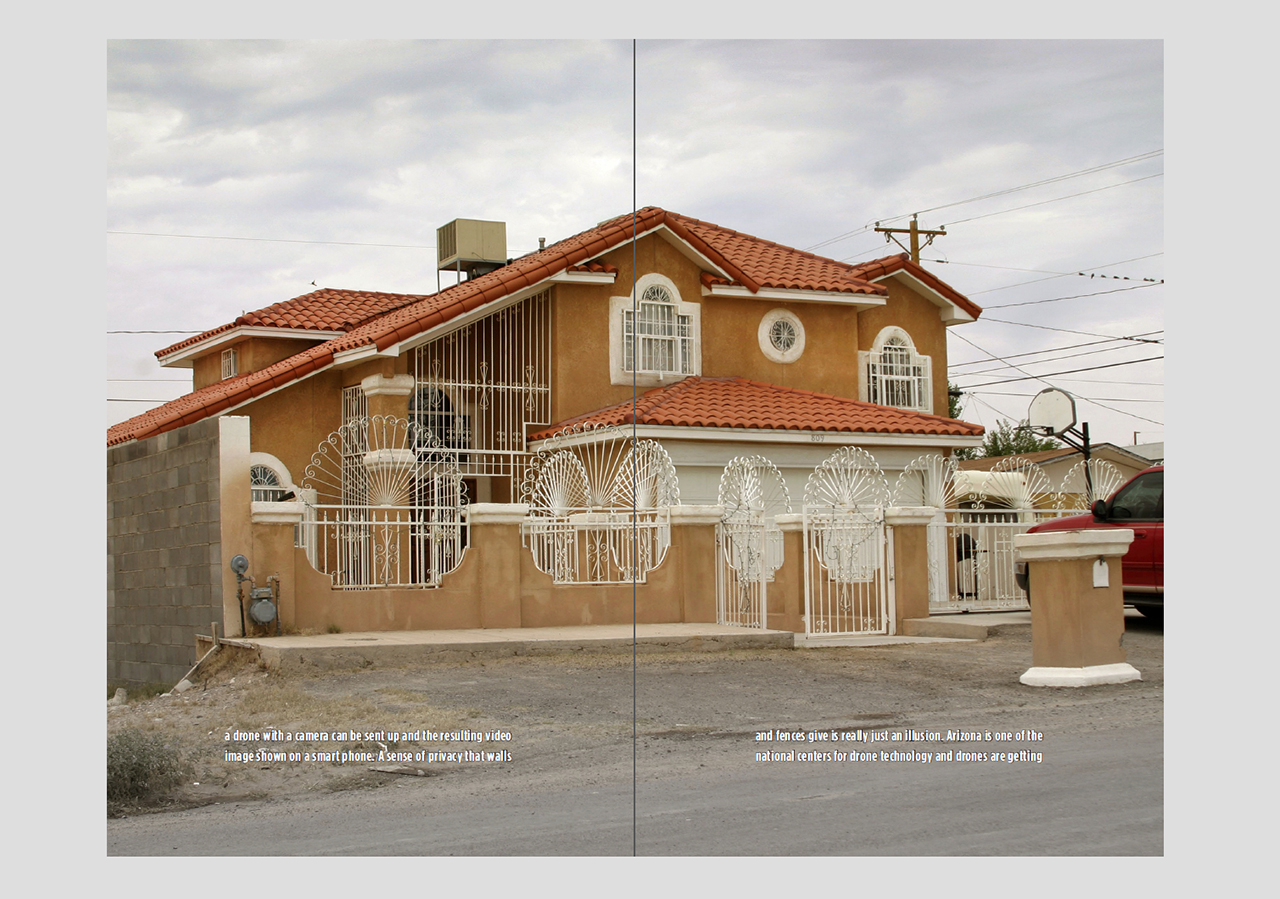 To make things even more complicated, we are now entering the drone era, where for a few hundred dollars, a drone with a camera can be sent up and the resulting video image shown on a smart phone. A sense of privacy that walls and fences give is really just an illusion. Arizona is one of the national centers for drone technology and they are getting cheaper, larger, and more sophisticated all the time. As is already done in the reverse, will cheap drones allow drug smugglers and the coyotes that take immigrants over the border to spot border patrol and other surveillance personnel or equipment? It cannot be far away that drone technology will be converted back to very inexpensive manned flight. Already drones are carrying much more than cameras or even the predator missiles used in Pakistan, they are carrying crop dusting chemicals and all sorts of other heavy loads. This development indicates then that we are heading into a time that border walls will be even less of an effective deterrent to passage and far more symbolic than anything else.
